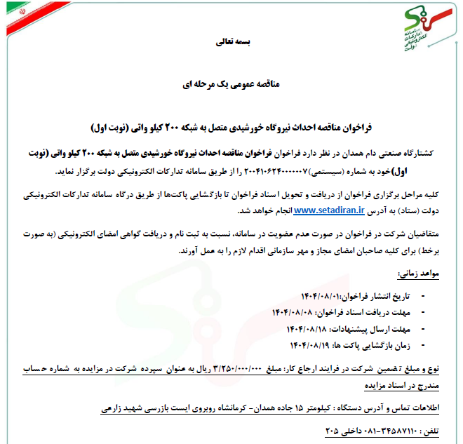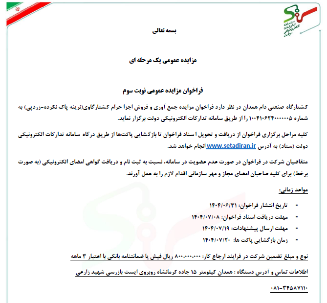 آگهی های مزایده و مناقصه مرکز کشتارگاه صنعتی دام همدان