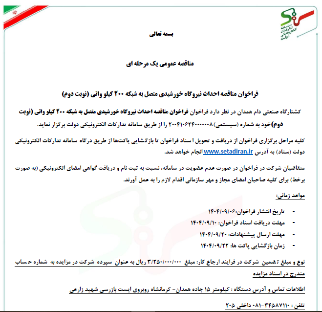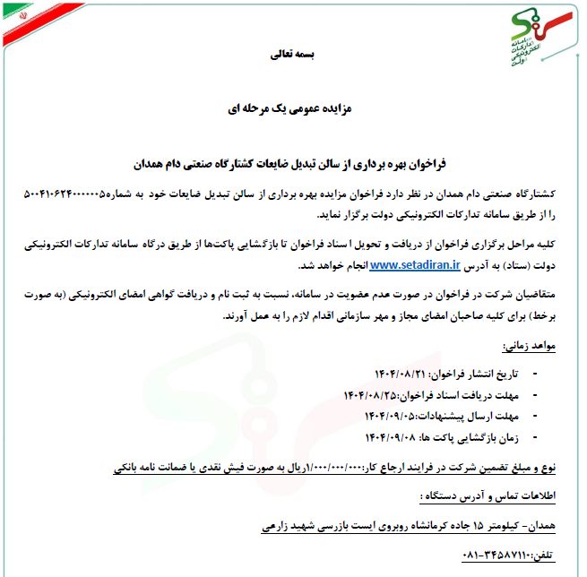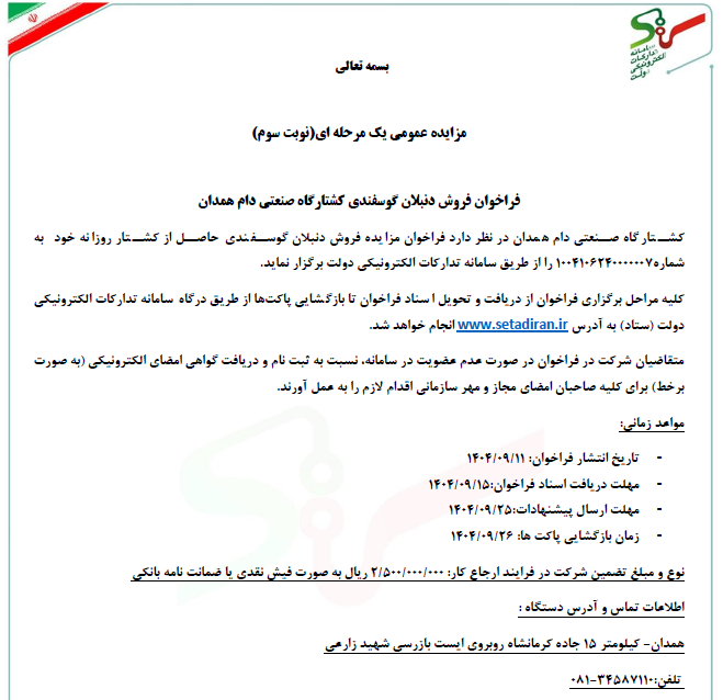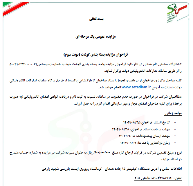 آگهی های مزایده و مناقصه مرکز کشتارگاه صنعتی دام همدان